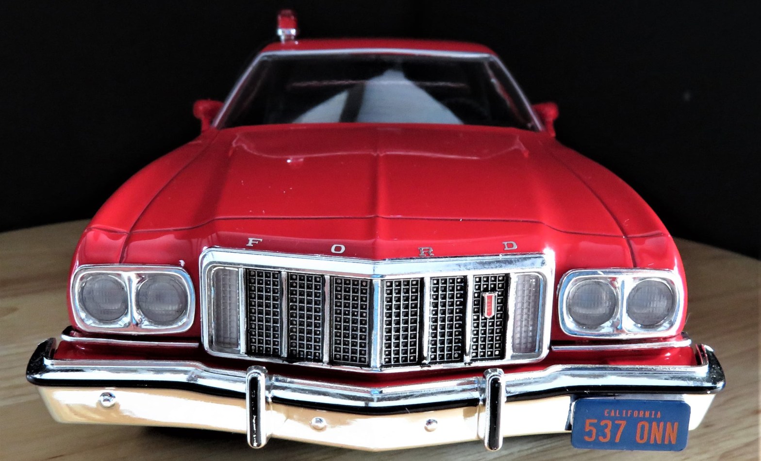 P.S: Natürlich kaufe ich mir hier in Deutschland keinen FORD GRAN TORINO…….obwohl…..naja, bis dahin muß es ein DieCast Modell im Maßstab 1:18 tun. Also rauf auf die drehbare Käseplatte, zwei dunkle Kissen dahinter und fertig ist die Illustration.