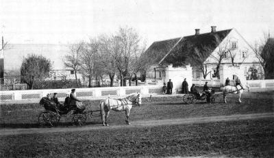Abb. 2 Kolonistenhof in Balzer (Wolgagebiet), Holzhaus mit abgewalmten Dach am Anfang des 20. Jh. Quelle: Landsmannschaft der Deutschen aus Rußland, Stuttgart