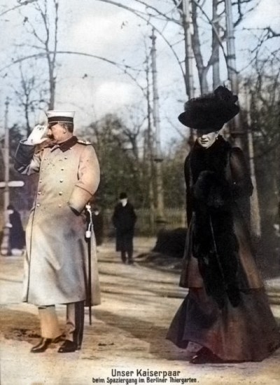 Dem Kaiser konnte man in Berlin schnell mal auf einem Spaziergang begegnen (nachkoloriert).