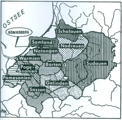 Das Prußenland bestand aus elf Stammesverbänden. Die Sassen und Galinder lebten im Süden, Sudauer im Südosten, Pomesanier, Warmier und Pogesanier im Westen, Barten, Natanger und Samländer in der Mitte und im Norden, Nadrauer und Schalauer im Nordosten. Eine gesamtstaaatliche Verbindung zwischen den einzelnen Prußenstämmen bestand nicht und scheint auch niemals angestrebt worden zu sein.