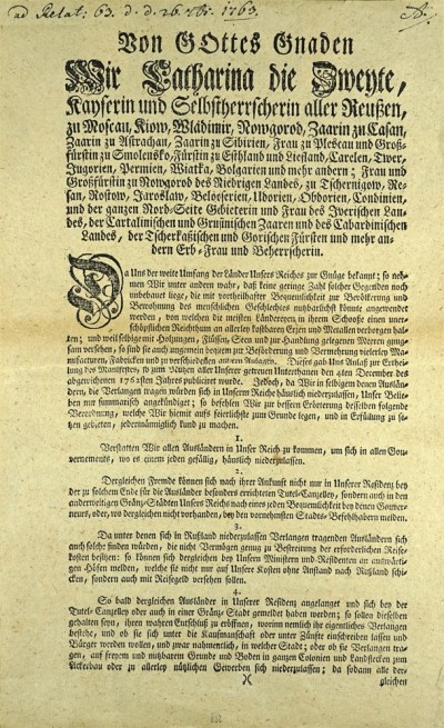 Manifest von Katharina II. zur Ansiedlung der Deutschen