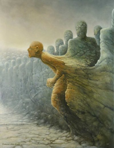Die Trennungslinie verläuft zwischen den Toten, die an uns herantreten und unserer Liebe bedürfen – und den Gespenstern, die wir uns selbst schaffen in unserer Entfremdung, der Thanatoskultur der Maschinen, Waren, Pyramiden, Monumente. Die Toten sind nicht dort, wo man Kränze niederlegt. Sie gehen mit uns durch die verschneiten Straßen, sie sitzen zwischen uns auf den Stühlen, sie schreiben mit am Computer.